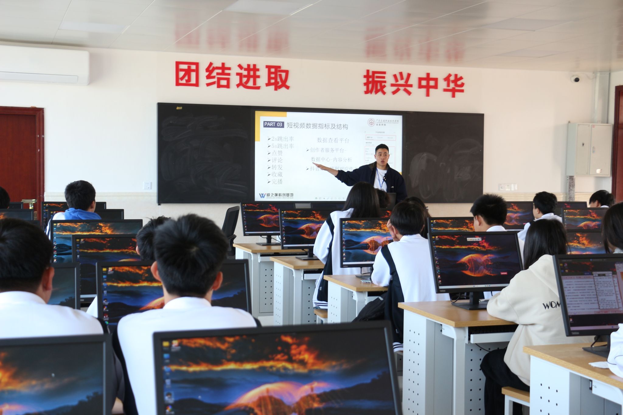 企业导师进课堂,提升专业吸引力。信息学院“校中厂”威之廉科创基地企业导师陈仁俊为汕尾市陆丰市职业技术学校学生带来了一场精彩的新媒体知识科普讲座。讲座以“短视频内容创作与IP打造”为主题,重点讲解了短视频起号逻辑、爆款要素、数据指标及结构,以及个人IP打造和拍摄技巧等方面,将学院专业特色与信息时代有机结合,进一步激发了同学们的参与热情,对学院办学特色等有了更深一步的了解和认识。