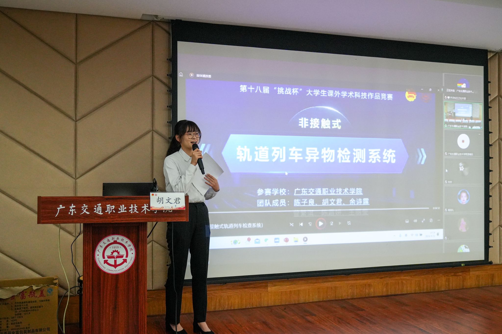 开幕式上,第十八届“挑战杯”全国大学生课外学术科技作品竞赛二等奖《非接触式轨道列车异物检测系统》指导老师彭育强分享项目指导经验,他从团队建设、工作分工、日常训练、参赛经历等方面讲述了项目从筹备、开展、参赛、打磨、再参赛、再打磨一路走来的经验与教训,呼吁同学们要积极创新、勇于突破,甘于投入、不怕失败,在科创实践路上愈挫愈勇、屡败屡战,不负大学美好的青春时光。项目核心成员胡文君就项目参加国赛答辩环节进行模拟展演,为与会师生重现了当日国赛现场紧张而丰富的精彩汇报,赢得了观众的热烈掌声。