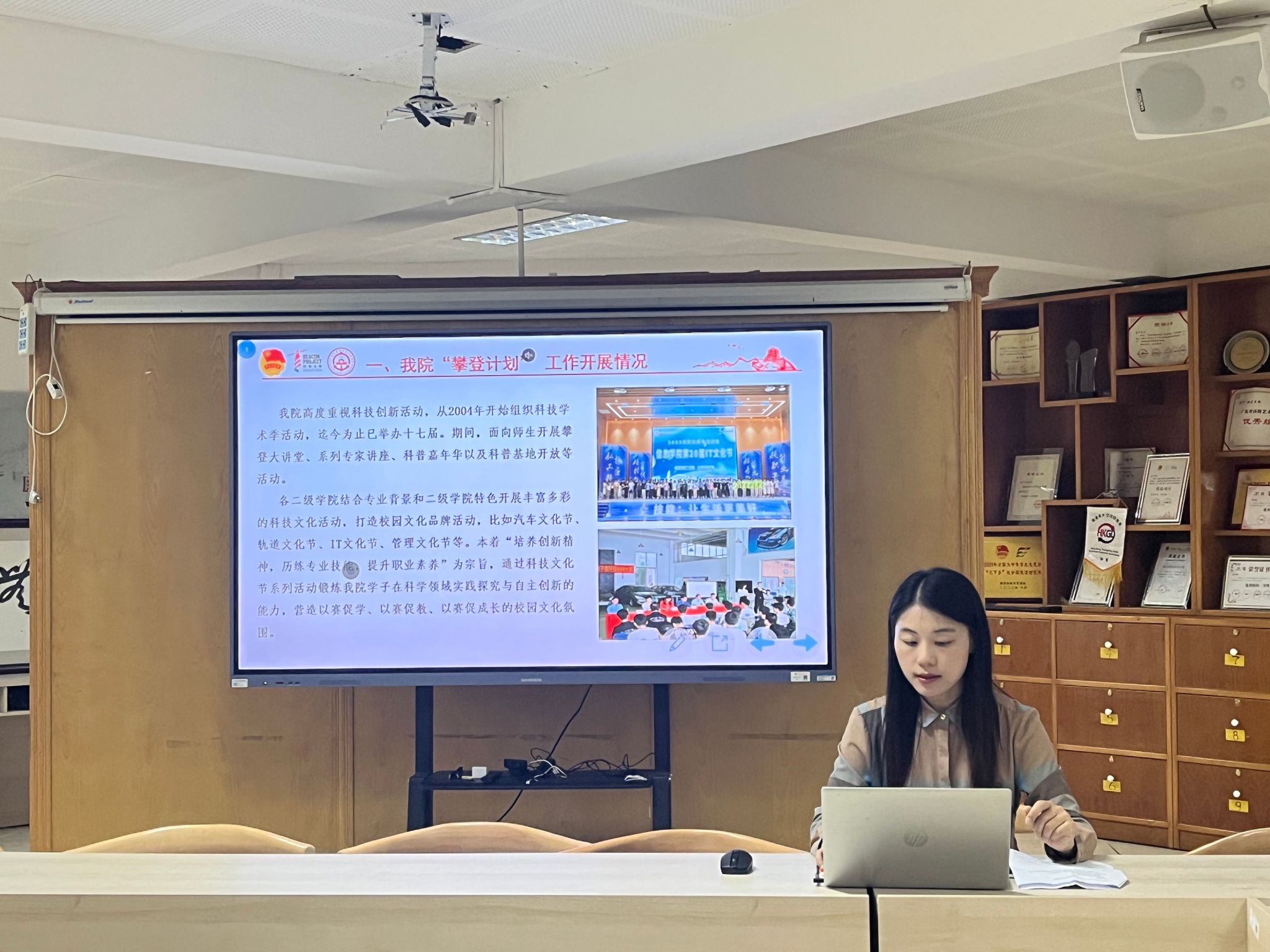 刘一苇首先介绍了近年来学院科创工作的开展情况及取得的成绩,对2023年“攀登计划”立项项目的基本情况、各项目完成的进度、经费使用情况、项目成果以及下一阶段计划依次进行汇报。