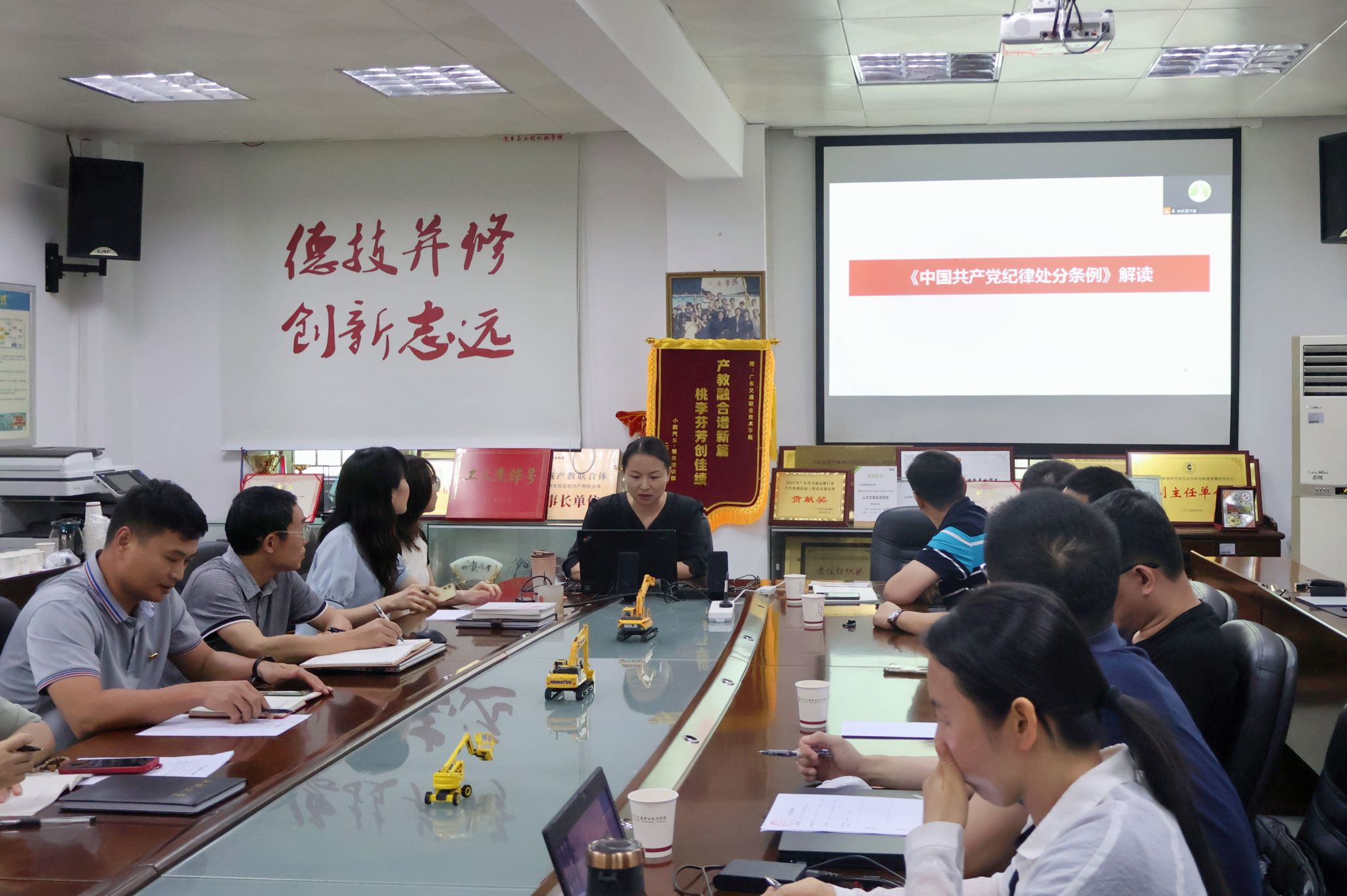 熊嘉逸围绕新修订的《中国共产党纪律处分条例》,从修订背景及要求、主要内容解读和如何贯彻落实贯彻落实《条例》等三个方面对《条例》进行了系统阐释和详细解读。同时,通过列举高校违纪违法典型案例,结合实际,使全体教师党员更加深刻地认识到了党纪的重要性和严肃性,进一步增强了党性观念和纪律意识。她强调,党的十八大以来,党中央连续三次修订《条例》,释放的是从严治党越来越严、越往后执纪越严的强烈信号,彰显了我们党推进自我革命的坚定决心和坚强意志。全体党员要准确掌握《条例》的主旨要义和规定要求,将党纪学习教育转化为日常习惯和自觉遵循,要紧密结合汽车与工程机械学院实际工作,牢固树立纪律意识、规矩意识,将党纪学习教育成果转化为实绩。