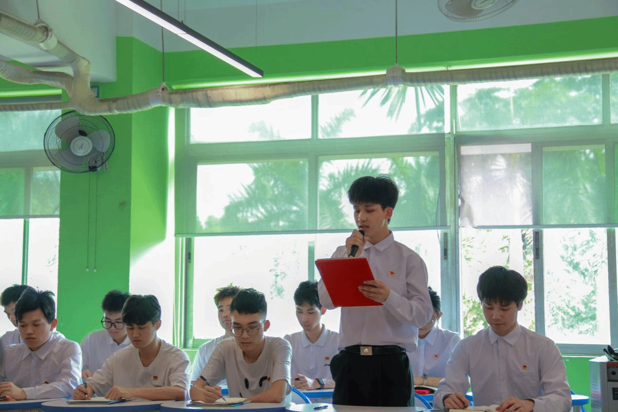 会上,在座师生们观看《中国共产党领导下的青年运动史》,共同回顾一代又一代的团员青年如何在不同的历史时期肩负起时代赋予的重任,用青春和热血书写着属于他们的辉煌篇章。学生骨干代表朗诵李大钊的《青春》,带领师生感悟革命先烈秉承为中国人民谋幸福、为中华民族谋复兴的初心使命,用鲜血和生命书写了气壮山河的英雄史诗,凝聚起亿万人民共创未来的磅礴力量。