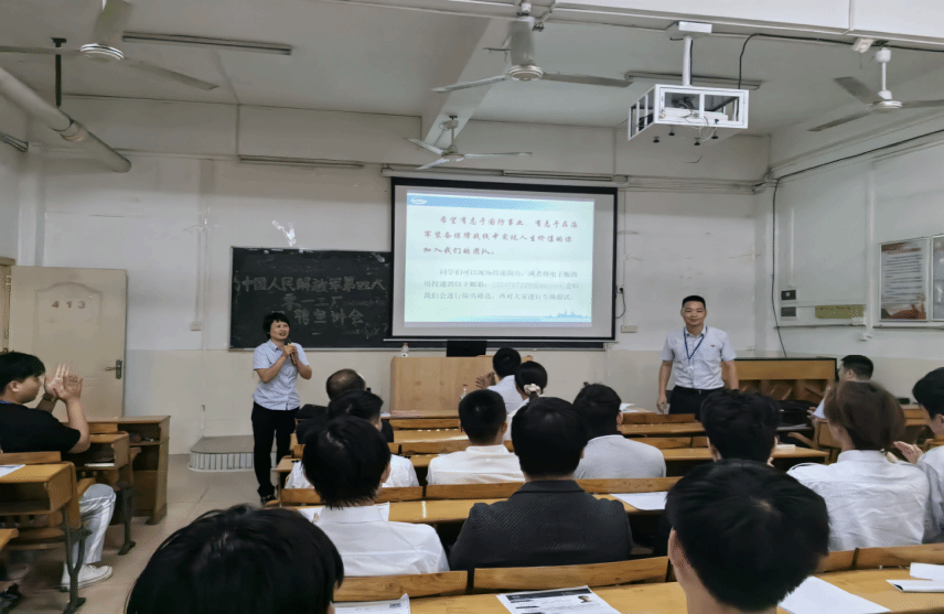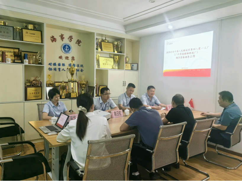 为落实2024届毕业生春季促就业工作,5月16日下午,海事学院组织“百日冲刺促就业”专场招聘会。中国人民解放军第四八零一工厂(广州华南船舶修造厂)机关第一党支部书记张建军、技术处处长陈日权、信息化装备修理分厂分厂厂长刘斌、人力资源管理员周丽华4人到海事学院走访交流,开展专场宣讲招聘,与师生进行面对面交流。海事学院党委廖文成、副院长高炳、轮机系主任林凌海、辅导员陈旭娜参加座谈。