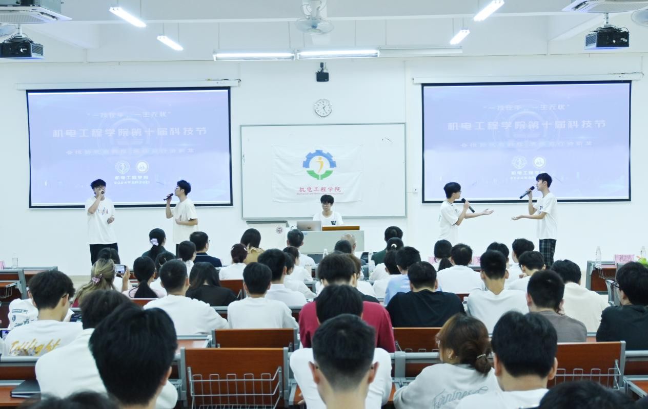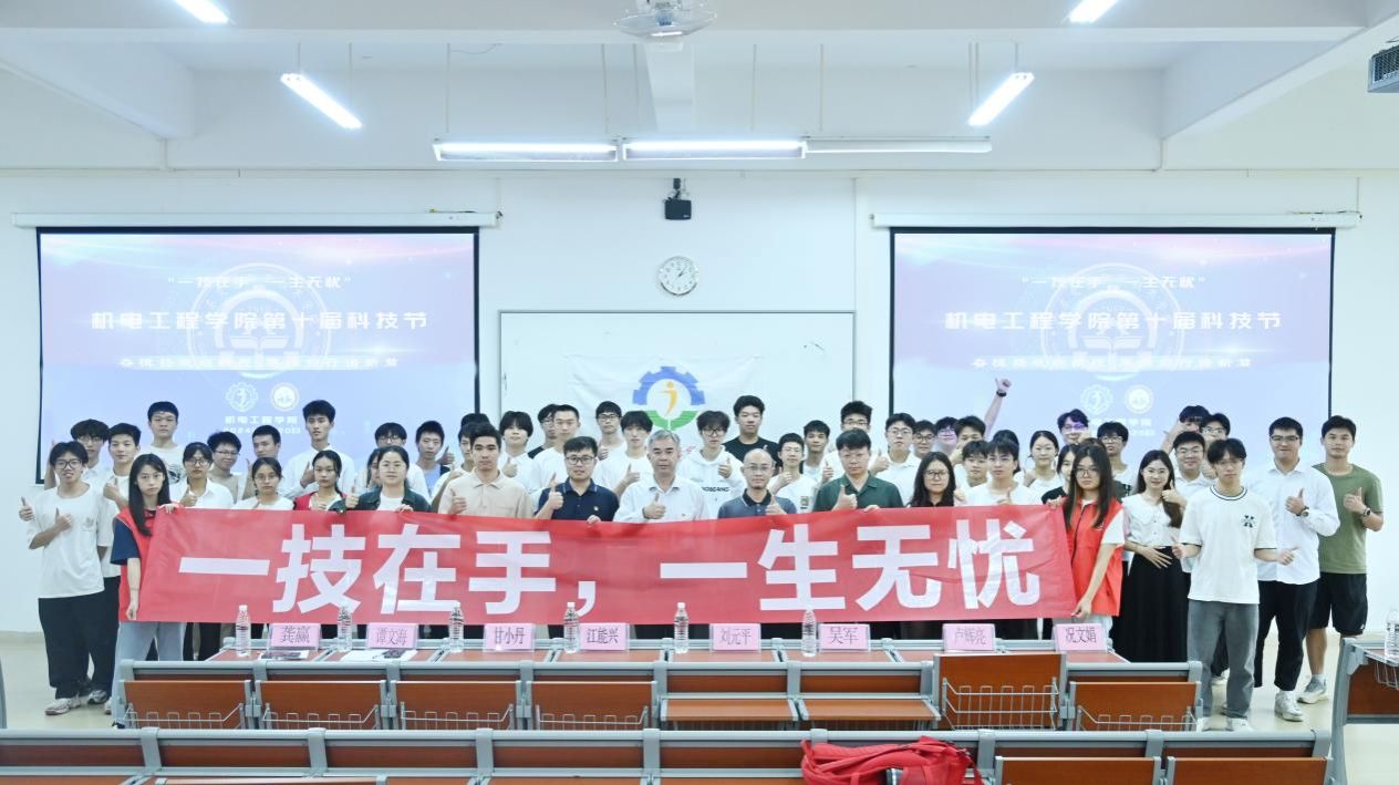 江能兴强调,党的十八大以来,习近平总书记把创新摆在国家发展全局的核心位置,高度重视科技创新,围绕实施创新驱动发展战略、加快推进以科技创新为核心的全面创新,提出了一系列新思想新论断新要求。他表示,历来机电工程学院高度重视青年学生的培养与发展,坚持以“两善一星”教育建评为抓手,以“三融四素”文化育人平台为载体,不断丰富和拓展学生的第二课堂活动,营造了良好的科技实践、文化育人氛围,积极培养学生的创新精神和实践能力,不断提升学生的综合素质和科技创新能力。以文化育人与科技创新为抓手,推动“三全育人”工作提质创新,引领广大青年勇做走在时代前列的奋进者、开拓者、奉献者。