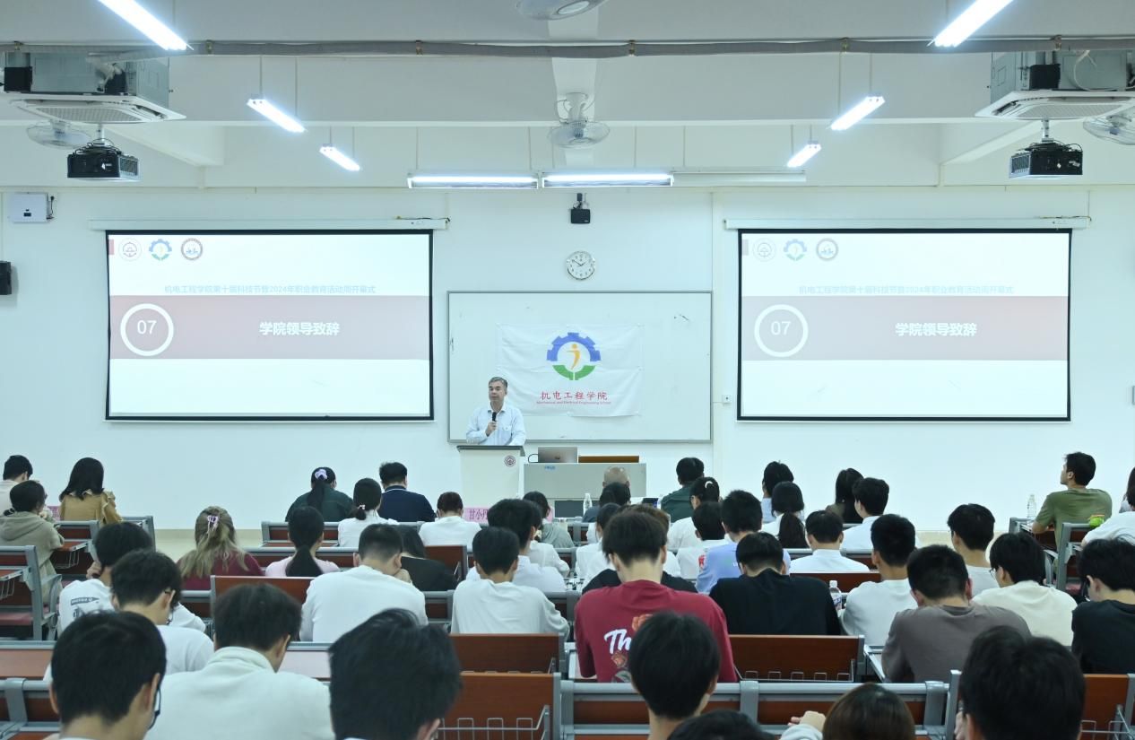 为全面贯彻落实党的二十大精神,深入学习贯彻习近平总书记关于科技创新的重要论述,全面落实立德树人根本任务,大力培养高素质技能人才,助力发展新质生产力,5月20日,机电工程学院在创新楼102顺利举办第十届科技节分享会。机电工程学院党委书记江能兴、党委副书记刘元平、辅导员、组织员,团委、学生会各部门、工作室学生骨干,2022级和2023级各班班团干部、发展对象、学生干部关键能力培训暨“青马工程”培训班优秀学员代表等参加本次活动。