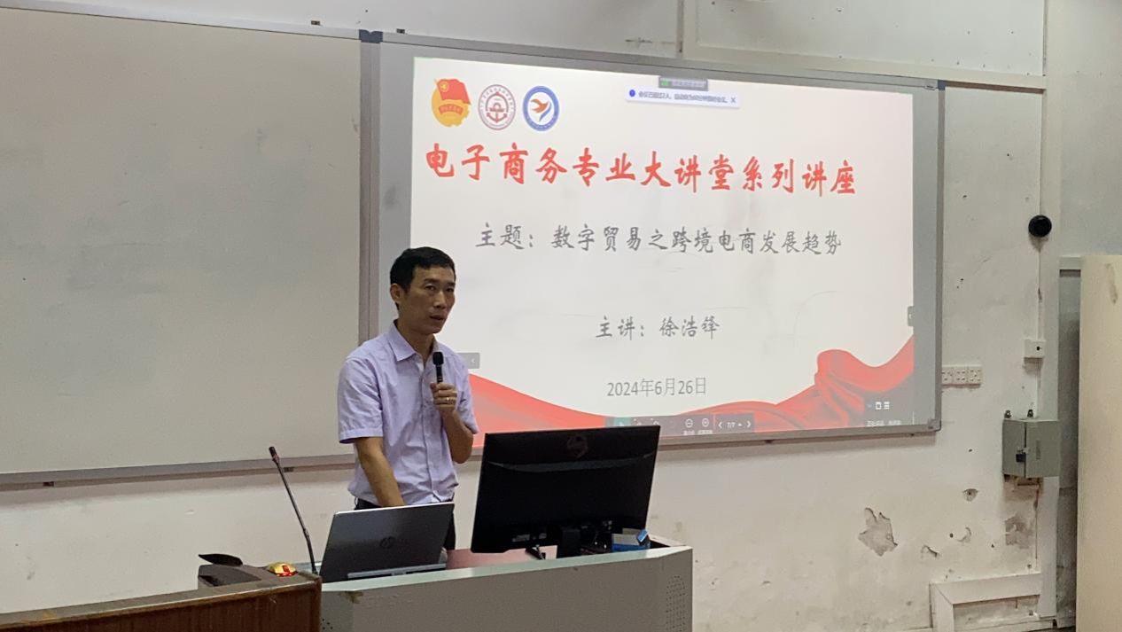 6月27日下午,运输与经济管理学院在花都校区举行了“数字贸易之跨境电商发展趋势”专题讲座。运输与经济管理学院副院长蔡善文,电子商务专业带头人吴雪毅,电商专业骨干教师黎胜文、陈元等参加了讲座。本次讲座邀请了企业跨境电商实战专家徐浩锋分析解读了电子商务和跨境电子商务最新的发展动态和未来趋势,探讨了在数字化浪潮下,电子商务和跨境电商的新机遇与挑战。