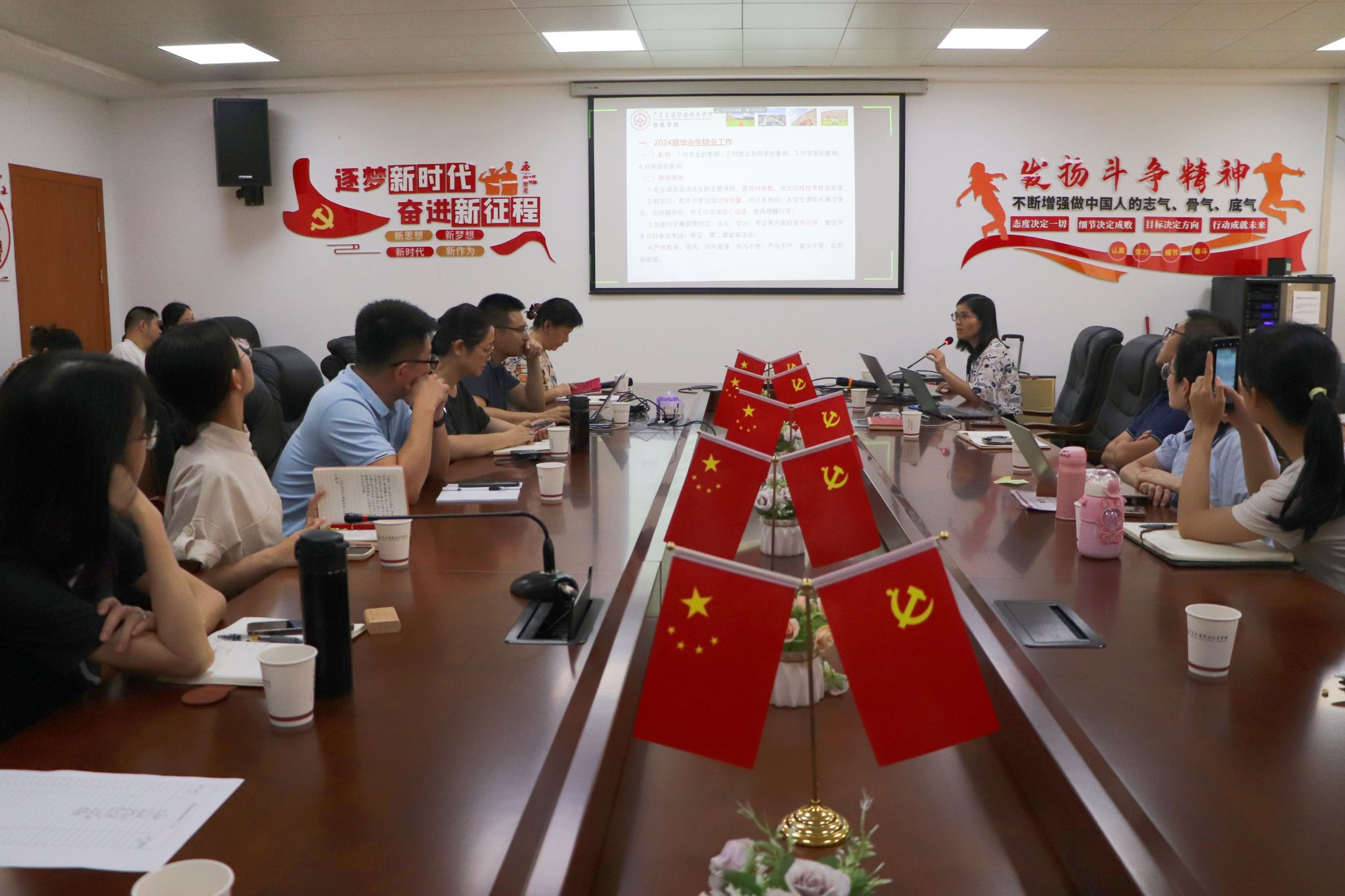 7月1日,信息学院在清远校区明德楼305召开2024年春季学期期末总结大会,信息学院党政领导班子、全体教职工参加了会议,会议由信息学院院长余明艳主持。