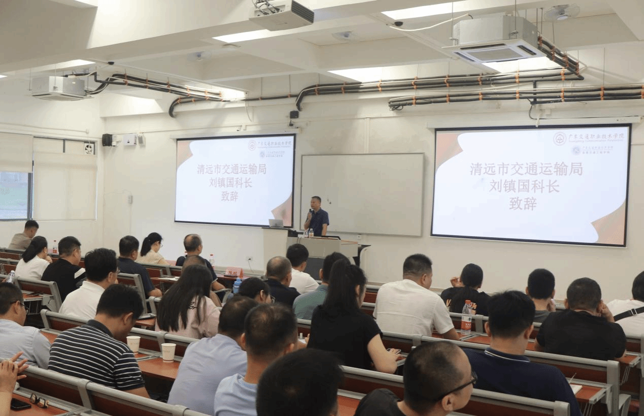 清远市交通运输局综合运输科科长刘镇国和智慧交通工程学院副院长王海玮分别作开班致辞。