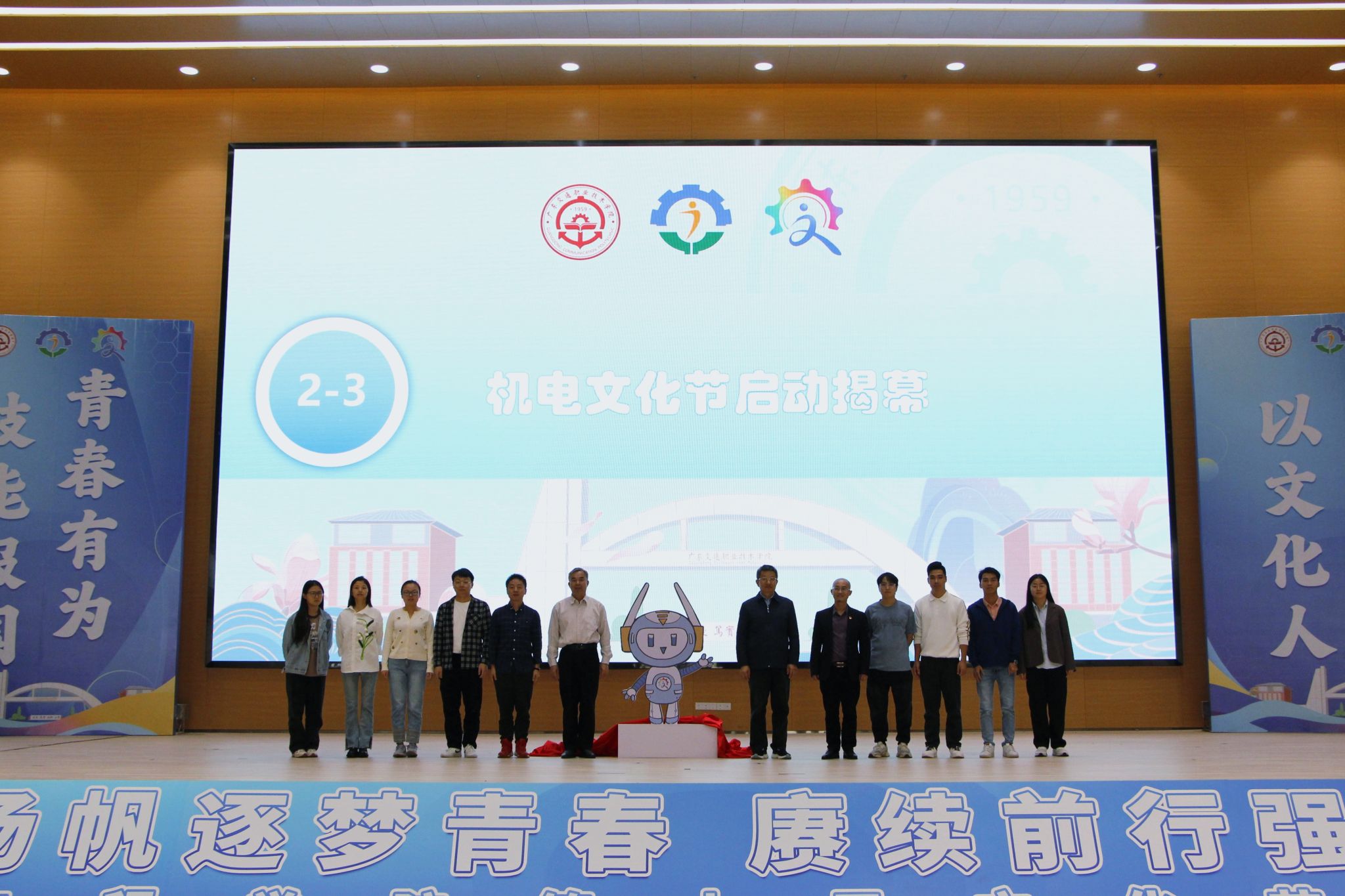 在现场师生的共同见证下,学院领导、老师共同为第十届机电文化节吉祥物揭幕。