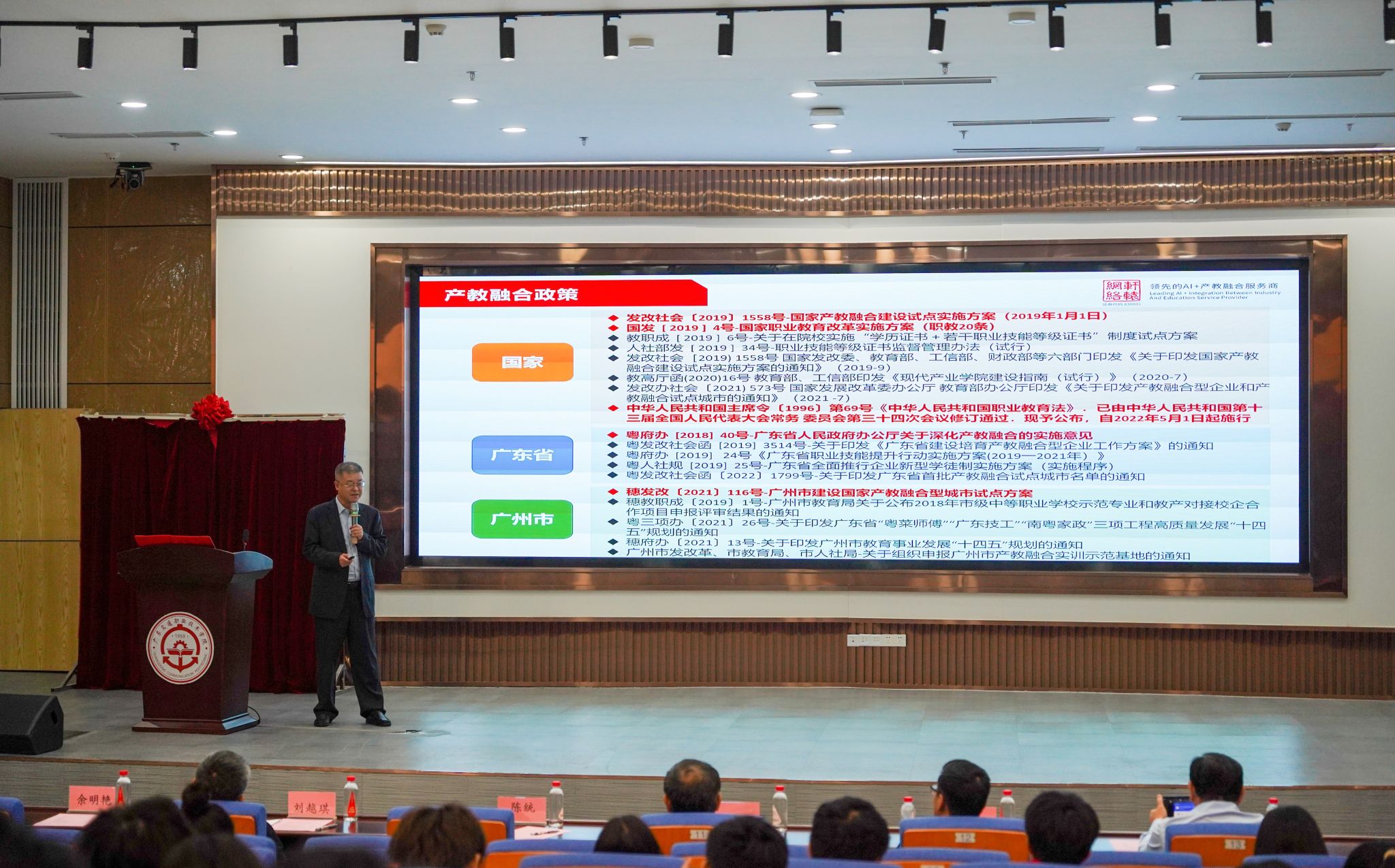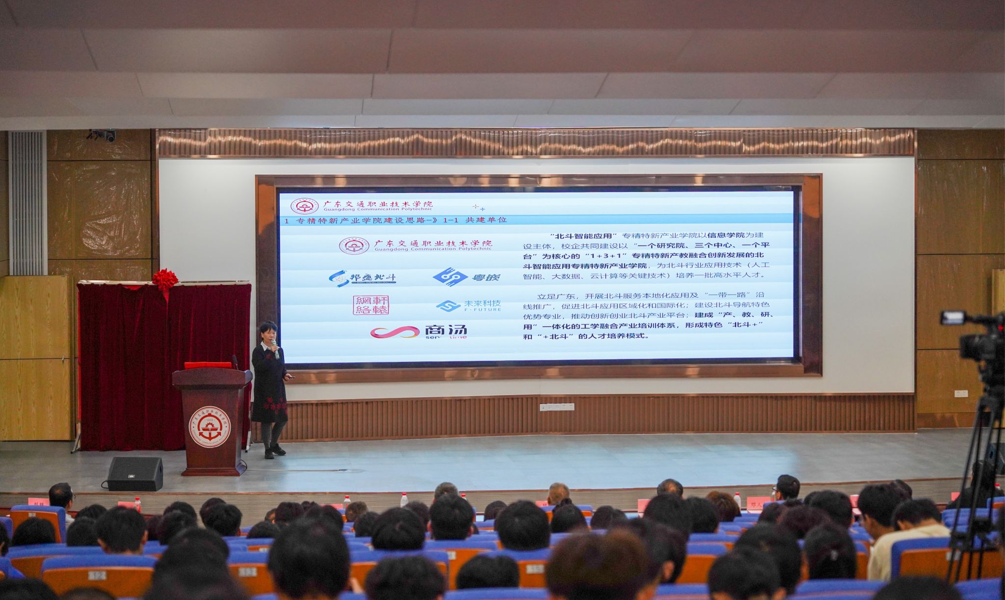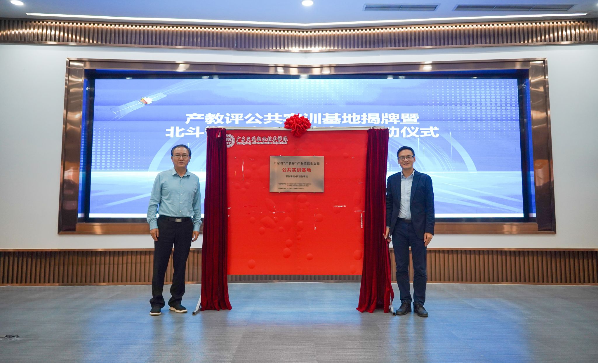 会上举行了广东省“产教评”产业技能生态链公共实训基地揭牌仪式。院长罗毅和企业代表邓人铭上台进行揭牌。罗毅宣布北斗智能应用技能大赛正式启动,并由企业代表蔡佳祥详细介绍了2023年北斗智能应用技能大赛实施方案。