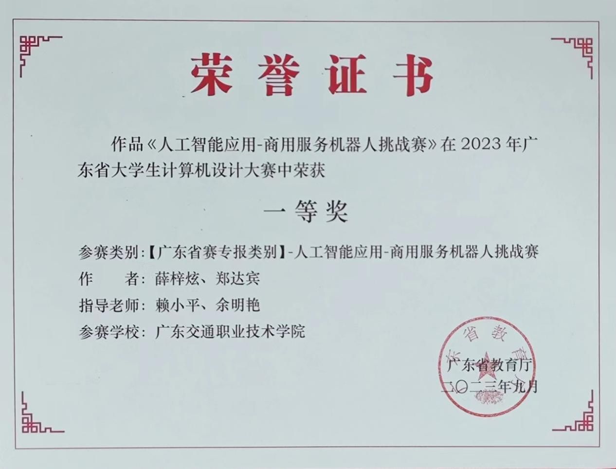 广东省大学生计算机设计大赛是教育厅每年主办的十项赛事之一,也是中国计算机设计大赛的省级选拔赛,旨在激发各高校各专业大学生学习计算机知识和技能的兴趣和潜能,提升大学生运用信息技术解决实际问题的综合实践能力。信息学院高度重视比赛,积极组织、悉心指导,参与了人工智能应用-商用服务机器人挑战赛、人工智能应用-智能视觉挑战赛、人工智能应用-仿生机器人挑战赛、人工智能应用-边缘智能应用挑战赛、信息可视化-信息图形设计、数媒动漫与短片-微电影等多个赛项。