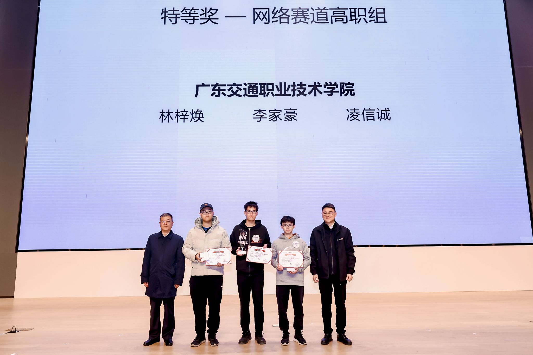 12月24日,华为ICT大赛2023-2024中国区广东省实践赛颁奖典礼暨深化产教融合,ICT人才培养高质量发展研讨会在华南理工大学国际校区成功举办。威廉希尔官网信息学院莫乐群老师指导的计算机网络技术专业林梓焕、李家豪和凌信诚在比赛中激流勇进,奋勇争先,在参加决赛的86所高校640名竞赛选手中脱颖而出,夺得网络赛道(高职组)特等奖,成功获得代表广东省参加华为ICT大赛2023-2024中国区决赛的资格,莫乐群获优秀指导教师奖。学院副院长王劲松、信息学院院长余明艳受邀出席座谈会。