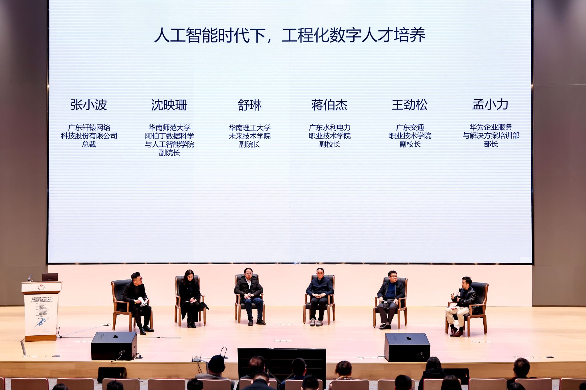 本次大会还以华为ICT大赛2023-2024广东省实践赛颁奖典礼为契机,围绕ICT人才培养主题展开讨论。副院长王劲松作为特邀嘉宾,围绕人工智能时代下,工程化数字人才培养的主题进行座谈分享,并对信息学院取得的发展成果表示赞赏。