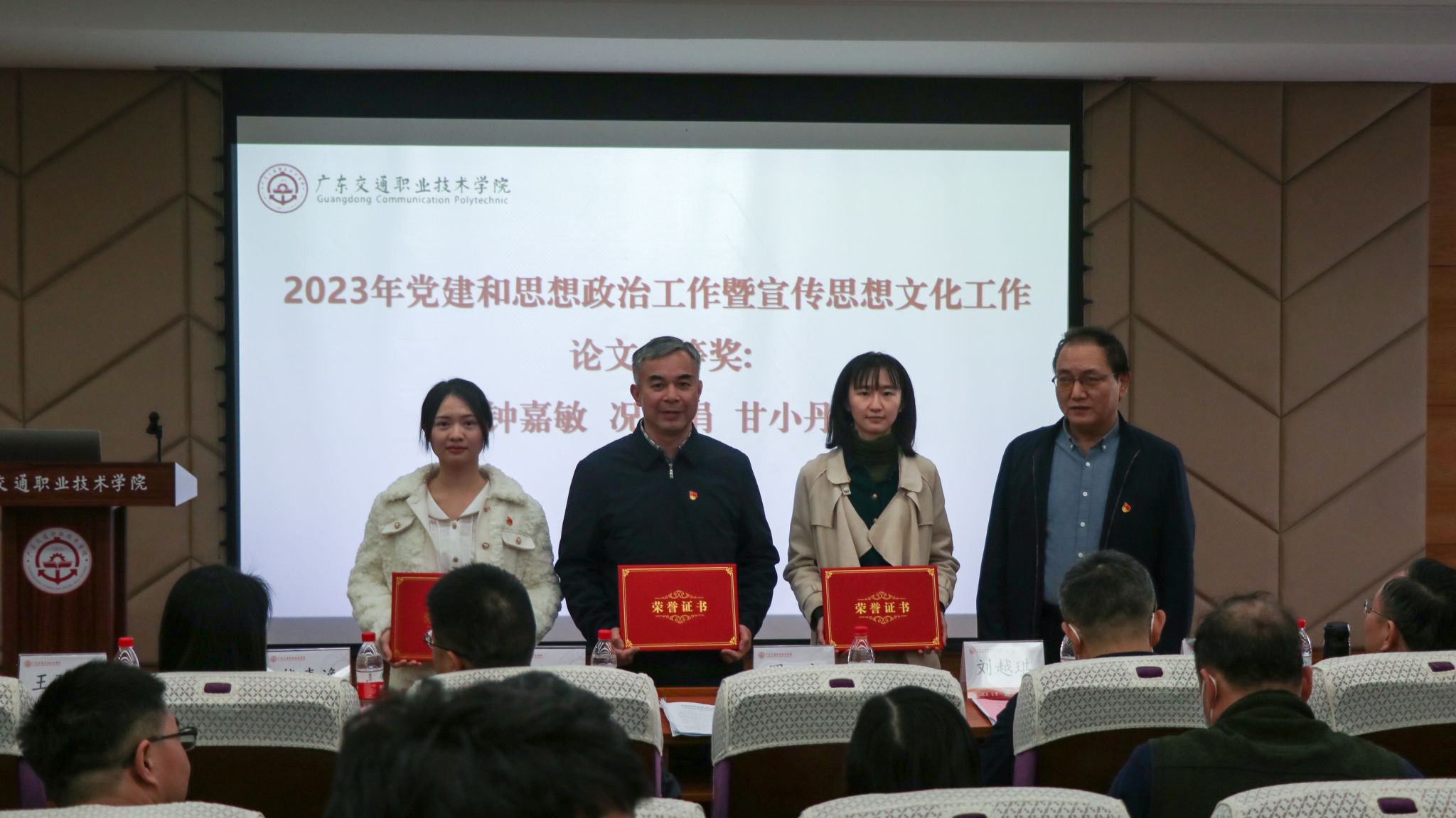 会上对2023年党建和思想政治工作暨宣传思想文化工作优秀论文、案例获得者和宣传宣讲先进集体进行颁奖。经专家评审,共遴选出优秀论文25篇、工作案例28篇,评选出宣传宣讲先进集体5个。副院长熊嘉逸宣布获奖名单,学院领导分别为获奖代表颁发证书。