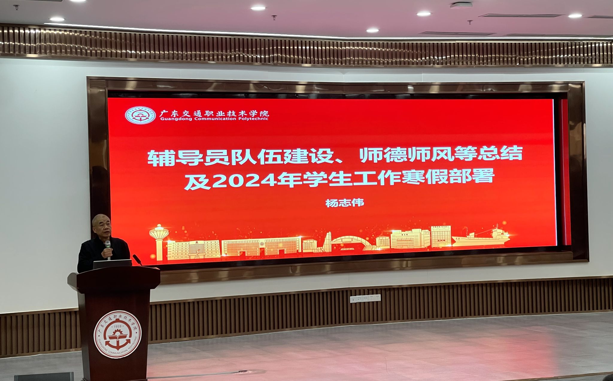 党委学生工作部部长杨志伟作辅导员师德师风建设总结及寒假工作部署,对《辅导员队伍建设的实施办法》进行了宣贯,希望全体辅导员能够铭记责任使命,做有理想信念、有道德情操、有扎实学识、有仁爱之心“四有”好教师。同时,对2024年寒假期间学生帮扶、心理重点关注人群家校联动、征兵就业等方面学生工作进行部署和安排。团委书记王铿崎对寒假期间共青团工作进行了提醒。