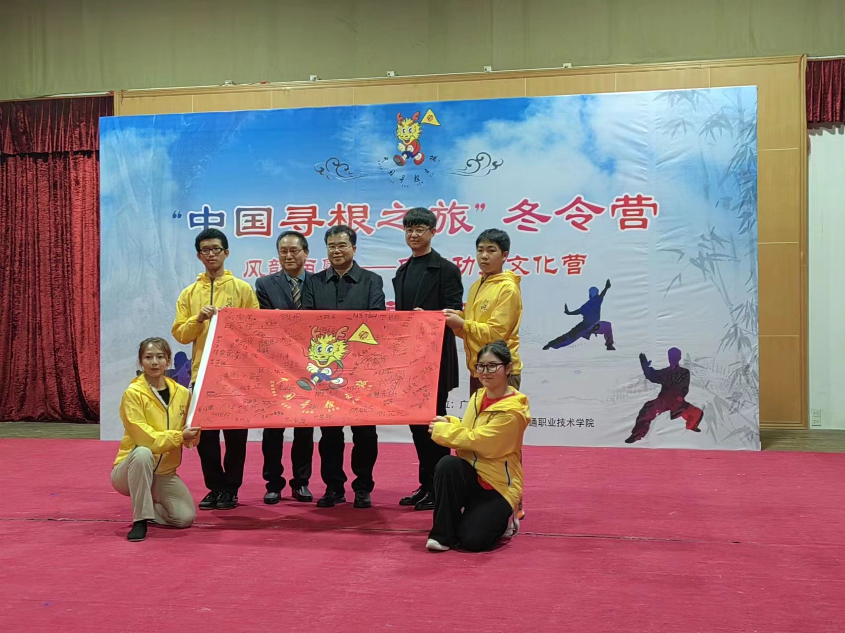 由中国侨联主办,广东省侨联承办的“中国寻根之旅”冬令营(广东省风韵南粤—中国功夫营)于1月30日下午在威廉希尔官网国际校区中华文化传承基地·禅武中心举行闭营仪式。广东省侨联二级巡视员林克风、广东省教育厅一级巡视员朱超华、广州市委统战部副部长、市侨办主任江帆、广州市公安局出入境管理支队赵艳春、广东省人民对外友好协会秘书长刘韧、广州市天河区公安局副局长雷鸣及广东省人民政府外事办公室、广州市中小学卫生健康促进中心、匈牙利出口促进局驻广州代表处相关领导、社会各界友好人士、禅武国际联盟总会副秘书长徐克、广东办事处首席代表王正浪、常务副主任高菲,学院院长罗毅、副院长邱文祥以及来自柬埔寨、委内瑞拉、澳大利亚、加拿大、匈牙利、马来西亚和中国台湾地区的70名营员及老师等150余人共同参加了闭营仪式。