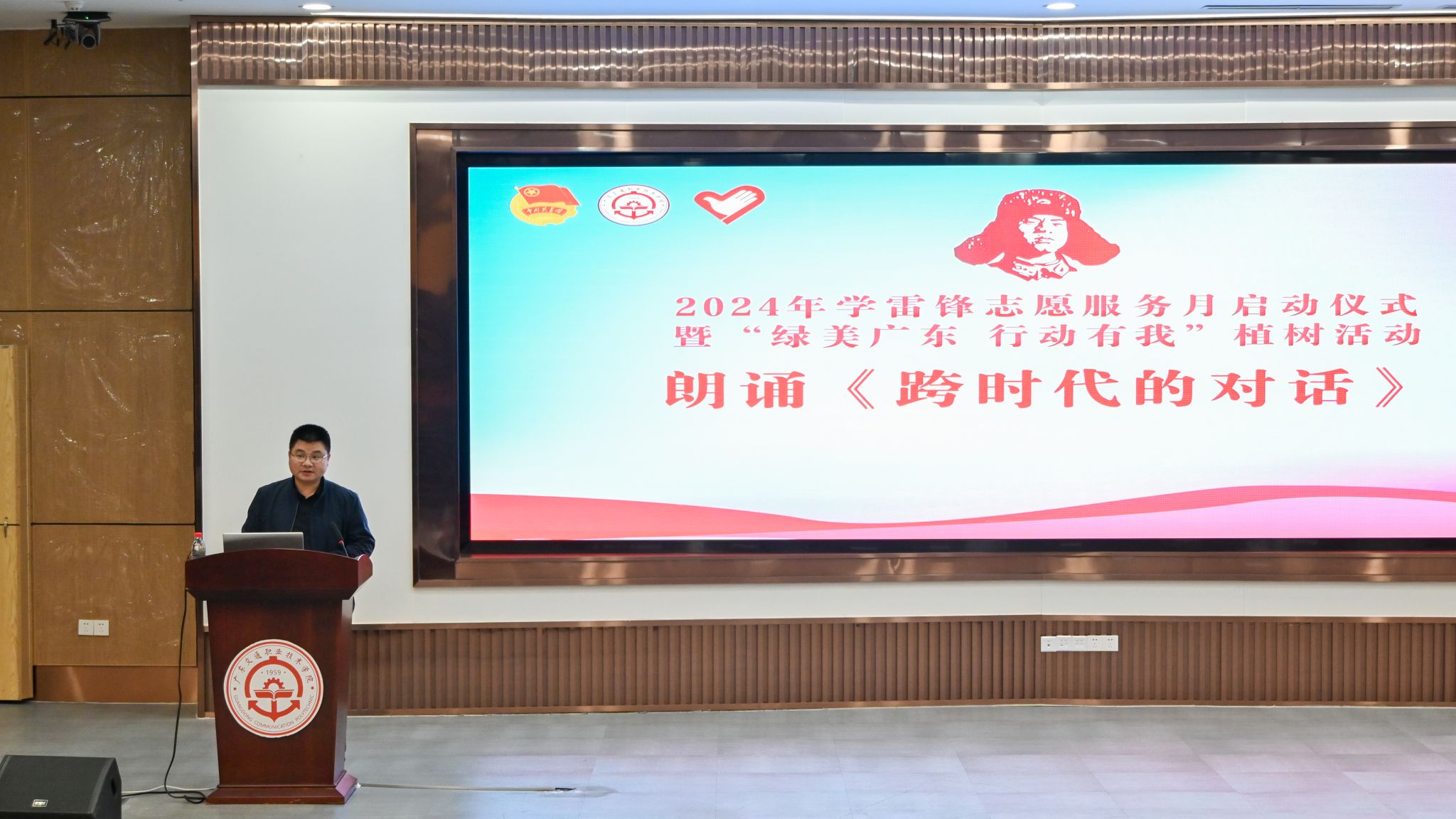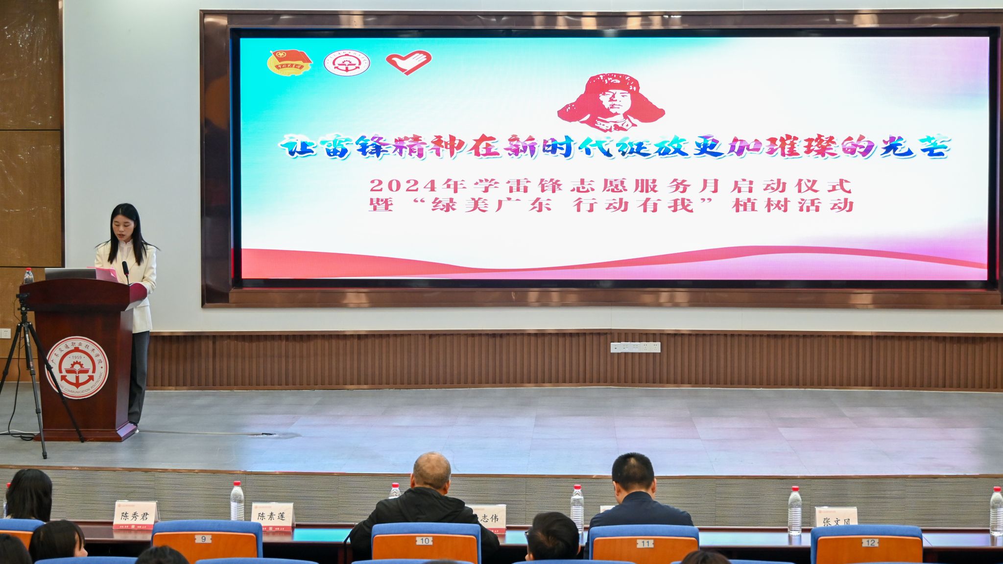 当日下午,学院2024年学雷锋月启动仪式暨“绿美广东 行动有我”植树活动在清远校区学术报告厅顺利举办。学院党委副书记廖金宝,党委学生工作部、团委负责人,二级学院党委书记、副书记、辅导员和志愿者代表们参加了启动仪式。