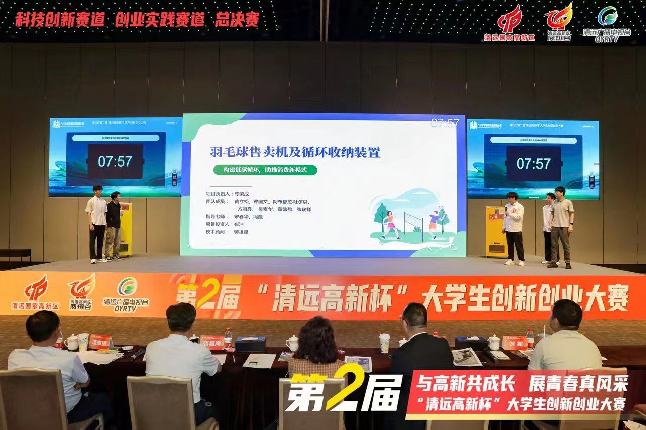 近日,在第二届“清远高新杯”大学生创新创业大赛总决赛中,威廉希尔官网“羽毛球售卖机及循环收纳装置”项目团队展示了扎实的科技创新成果、应用实效和社会责任,获得评委和观众的一致好评,荣获一等奖。