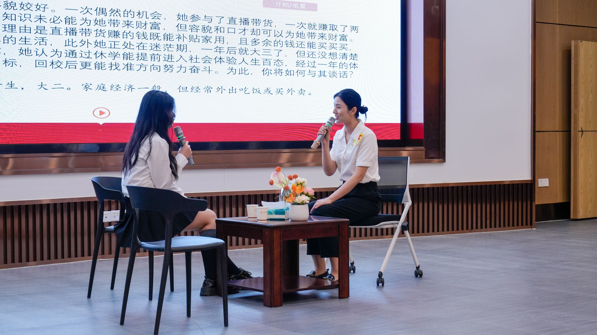 案例研讨环节中,辅导员两两分组,采用“我提问、你回答”的形式,剖析核心问题、辨析原因、研讨对策、总结规律。他们聚焦服务学生成长成才工作目标,围绕思想引领、身心健康、成长支持、日常管理等各方面现实问题,总结研讨解决之道。谈心谈话通过情景再现的形式,生动还原日常工作中辅导员与学生及家长面对面谈话、应对解决问题的情景。他们亲切自然、感情真挚、灵活多样,从“三全育人”“家校联动”“法律知识”等方面为学生和家长解决思想困惑和实际难题。