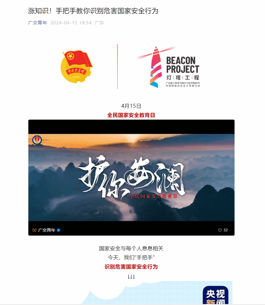 在国家安全教育宣传活动月期间,学院各单位结合实际以丰富多样的形式展开宣传教育,通过微视频大赛、主题班会、校园横幅、宣传栏、线上学习、官微公众号等多渠道普及国家安全知识,引导广大师生坚定维护国家政权安全、制度安全、意识形态安全,营造国家安全人人参与、人人有责的浓厚氛围。