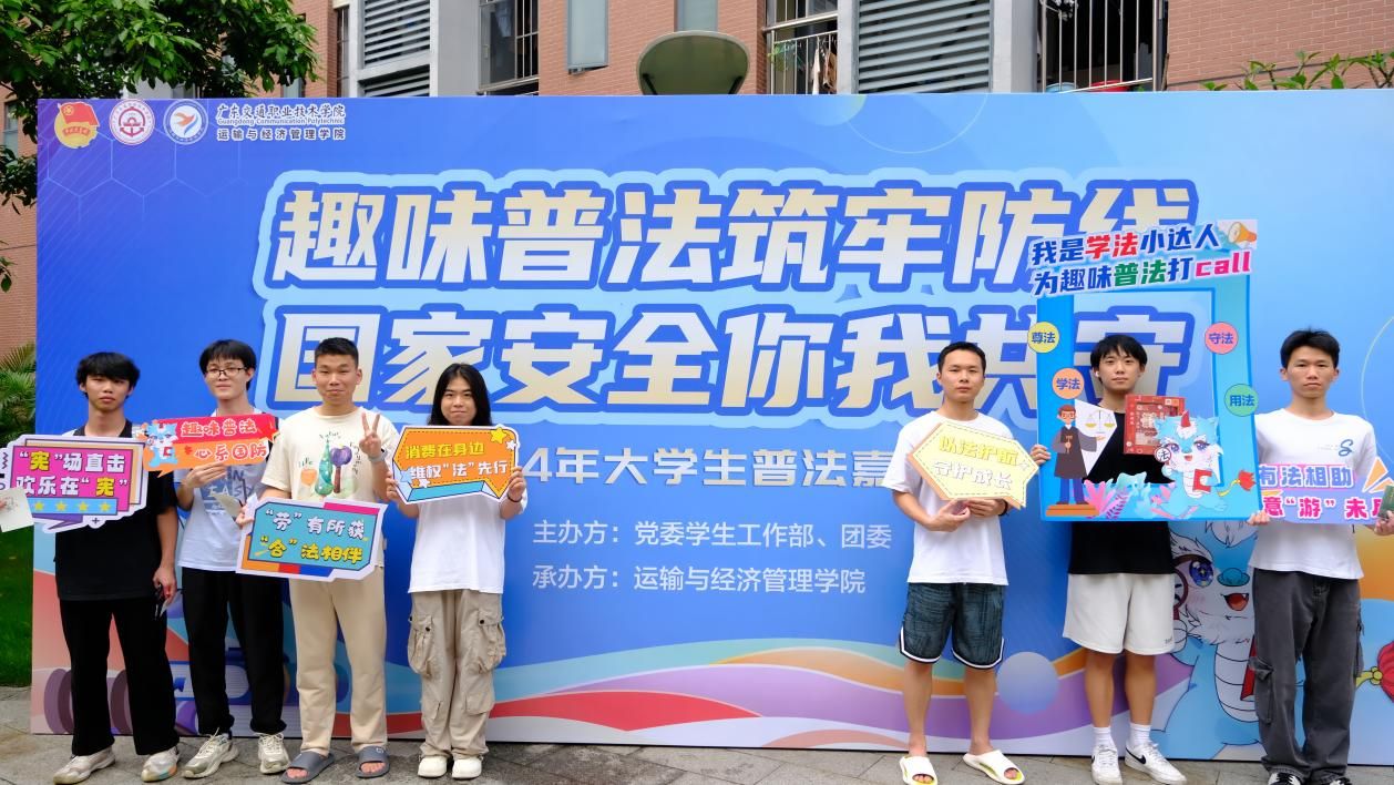 为深入学习贯彻习近平法治思想,落实《关于进一步加强高等学校法治工作的意见》精神,引导学生在游戏中不断探索法律的奥秘,4月25日,学院在清远校区一站式学生社区举办“趣味普法筑牢防线·国家安全你我共守”主题普法嘉年华活动。此次活动由学院党委学生工作部、团委主办,运输与经济管理学院承办,学院党委副书记廖金宝,团委书记王铿崎,运输与经济管理学院党委书记伍雄晖、院长王龙,党委学生工作部副部长钟海生,运输与经济管理学院党委副书记谢锐琼及辅导员出席此次活动,全院3000余名学生参加。