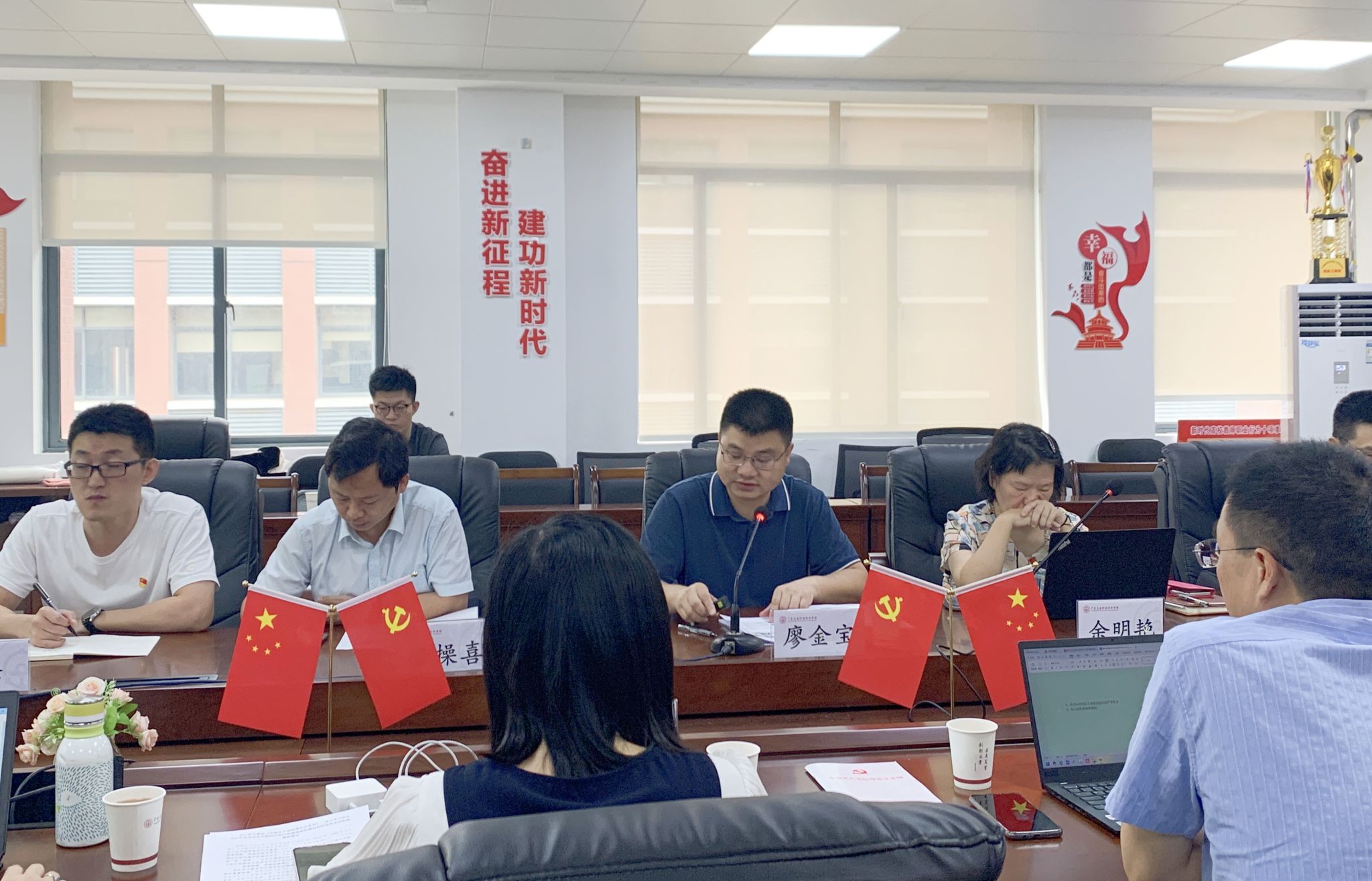 5月9日,信息学院与智慧交通工程学院党委理论学习中心组在清远校区明德楼305会议室联合开展党纪学习教育专题学习。学院党委副书记廖金宝、信息学院与智慧交通工程学院党委理论学习中心组成员、支部书记、组织员、辅导员代表等参加了会议。