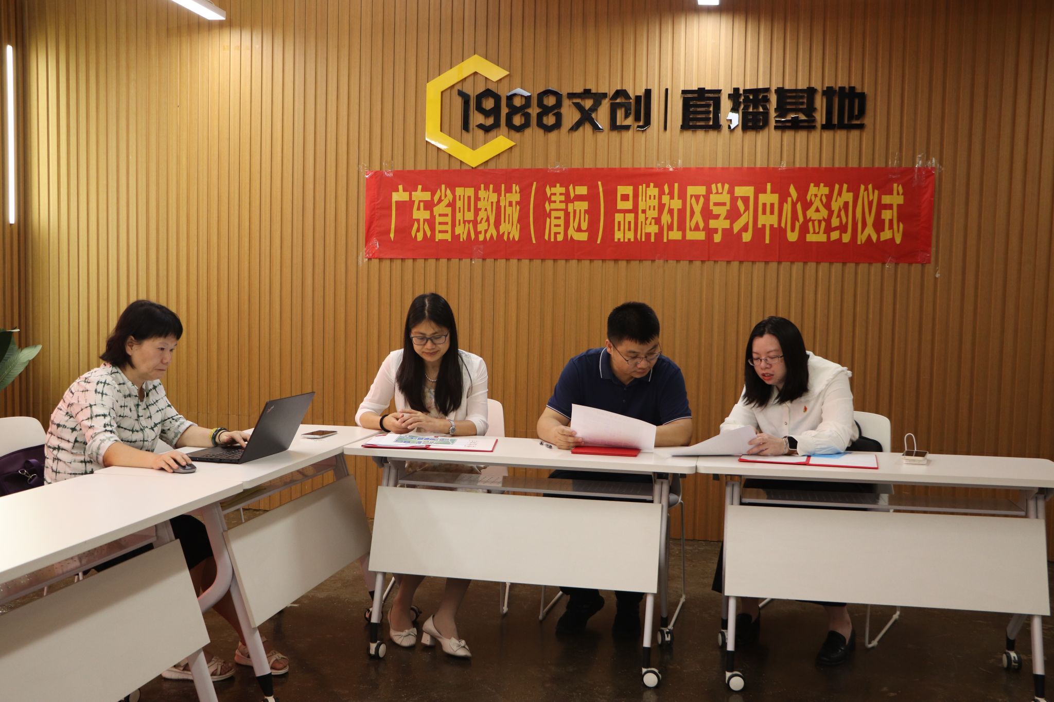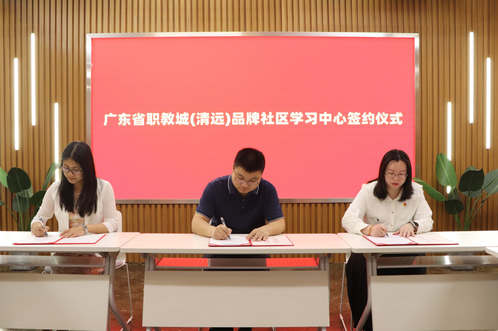 5月14日下午,广东省职教城(清远)品牌社区学习中心签约仪式在广东省职教城(清远)事务中心举行。学院党委副书记廖金宝、广东省职教城(清远)事务中心副主任温秀媚、职教城社区党支部书记朱婉艺、信息学院院长余明艳等人出席签约仪式。