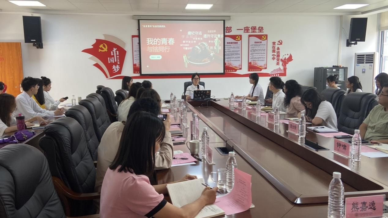 “法豸青年”社会实践团队的主讲人杨媛同学作了“我的青春,与法同行”主题分享。该社会实践团队在法治宣传教育中展现出了青春的风采和力量,他们用自己的实际行动诠释了主题,不仅展示了“法豸青年”社会实践团队的优秀风采,也激发了广大青年对法治建设的热情。