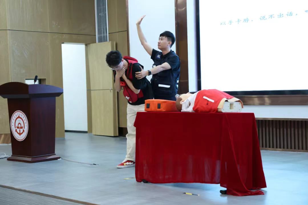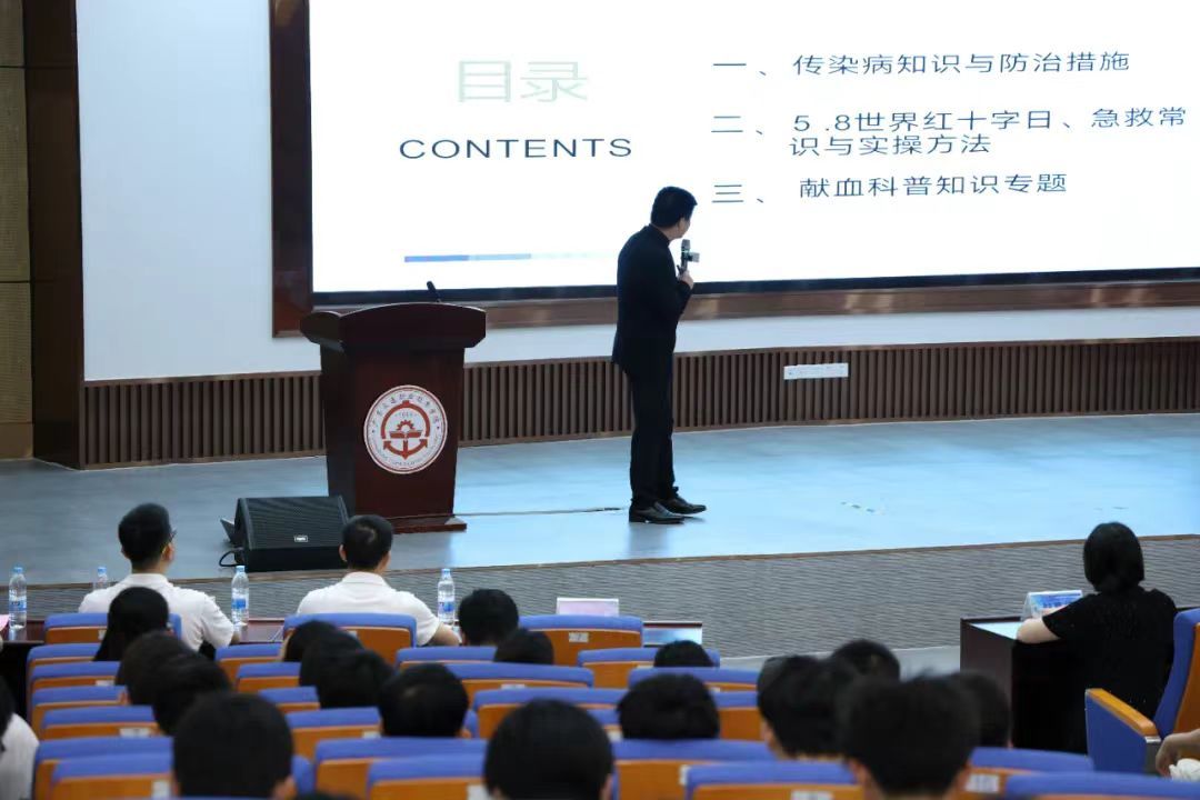 随后,广州中医药大学金沙洲医院的医生为师生讲授了“肺结核”、“甲流”、“诺如”、“肺结核”、“艾滋病”等传染病的防治知识,并就献血、红十字精神等进行专题分享。讲座中,医生还为同学们示范了急救操作技能。