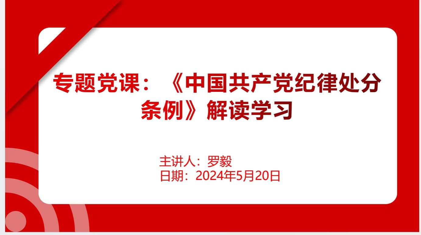 5月20日下午,学院党委副书记、院长罗毅为马克思主义学院党总支和党政机构党总支一支部讲授关于《中国共产党纪律处分条例》解读学习的专题党课。
