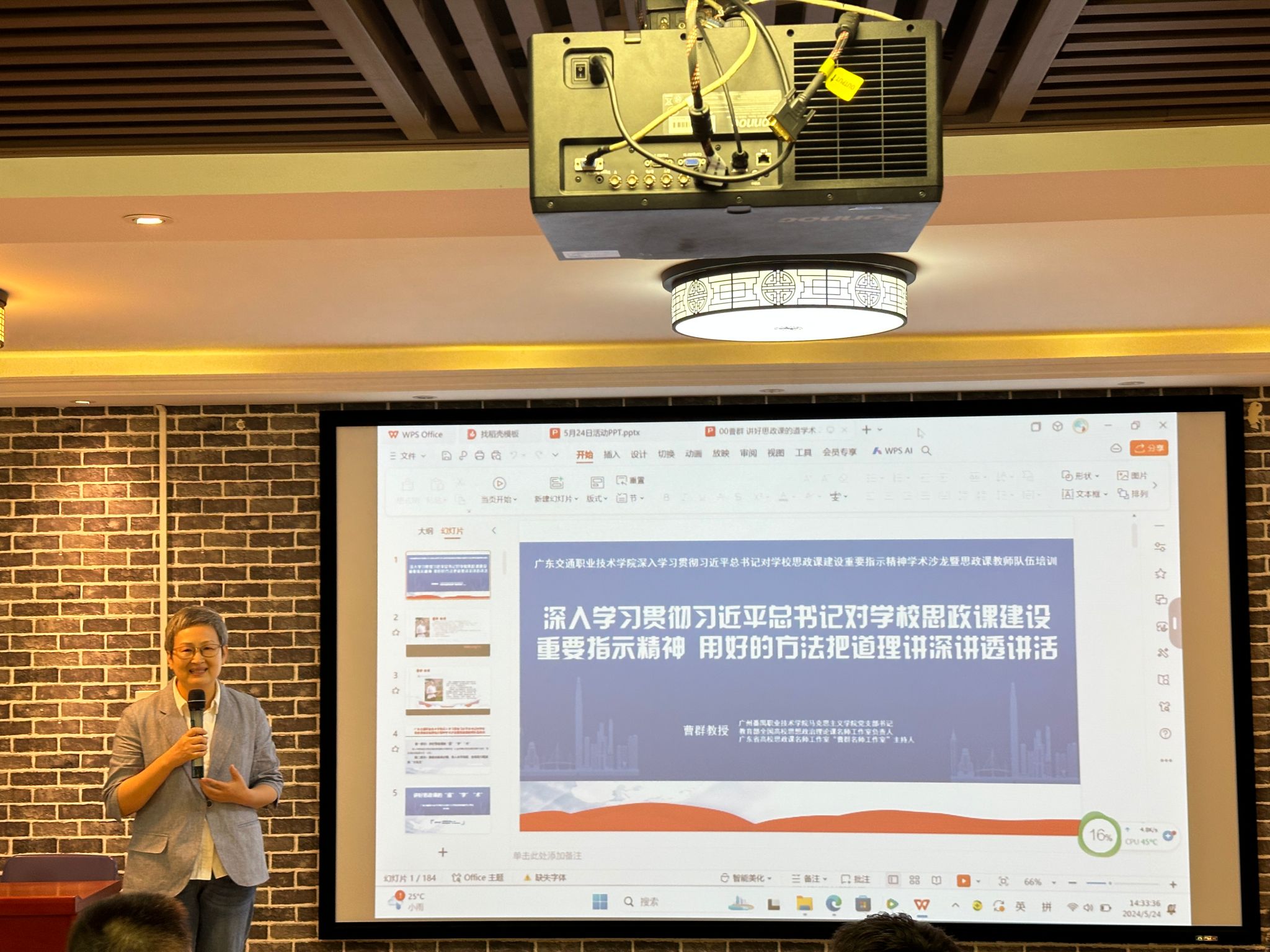 曹群以“深入学习贯彻习近平总书记对学校思政课建设重要指示精神,用好的方法把道理讲深讲透讲活”为主题,从“讲好思政课的‘道’‘学’‘术’”“做政治素质过硬、育人水平高超、业务能力精湛的‘大先生’”两方面授课。曹群指出,思政课要遵循立德树人、铸魂育人三大规律。同时,思政课应获得学生认同,以理服人,要将课程目标、课程设置、课程教材内容有效贯通,将思政小课堂和社会大课堂结合,进一步增强教学的针对性和实效性。另外,思政课教师要重视教学比赛的参与,不断践行“以赛促教”。在教师发展方面,曹群指出,要培养信仰坚定、学识渊博、理论功底深厚的思政课教师队伍。