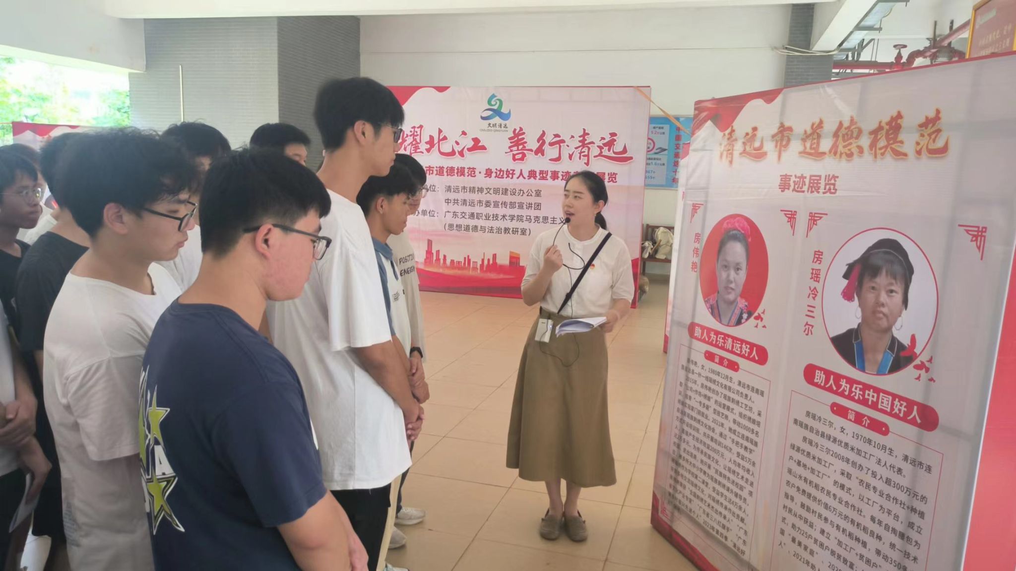 为贯彻落实习近平总书记对开展大思政课建设的重要指示精神,通过开展行走的思政课堂,推动思政课改革创新,进一步弘扬社会主义核心价值观,营造崇德向善的校园氛围,6月18日至20日,马克思主义学院于清远校区成功举办“德耀北江 善行清远”——2024清远市道德模范·身边好人典型事迹专题展览,展示清远市道德模范的先进事迹,本次参观学习的在校师生共计1000余人。