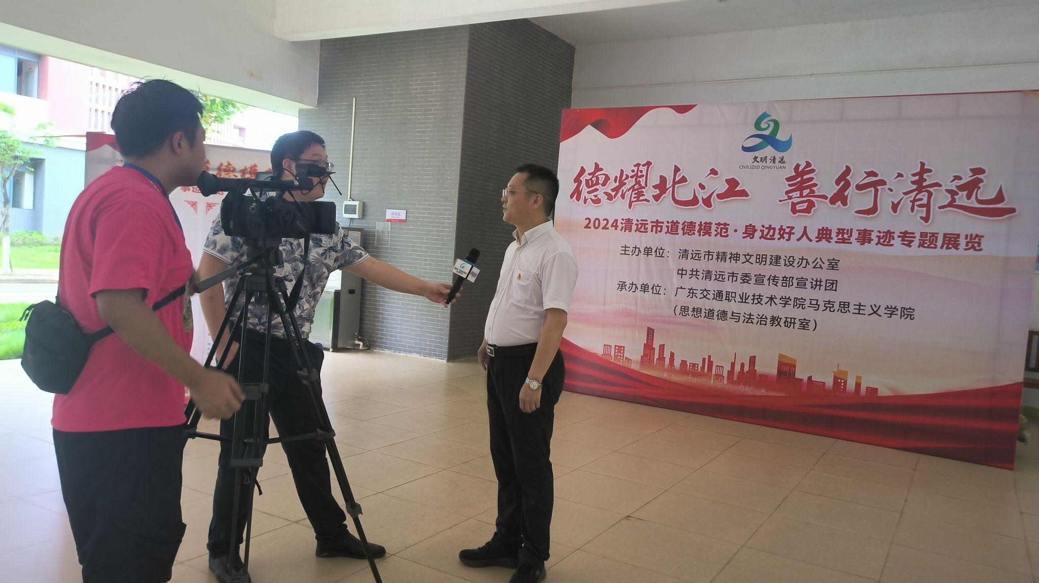 马克思主义学院院长周志平教授在接受清远市广播电视台采访时表示,本次展览和行走的思政课堂活动是学院思政教育工作的一次创新尝试,学院将继续深入挖掘和宣传身边的道德模范和好人好事,推动思政教育与校园文化建设深度融合,为培养更多具有高尚品德和时代精神的人才贡献力量。相关采访报道在清远新闻频道播出。