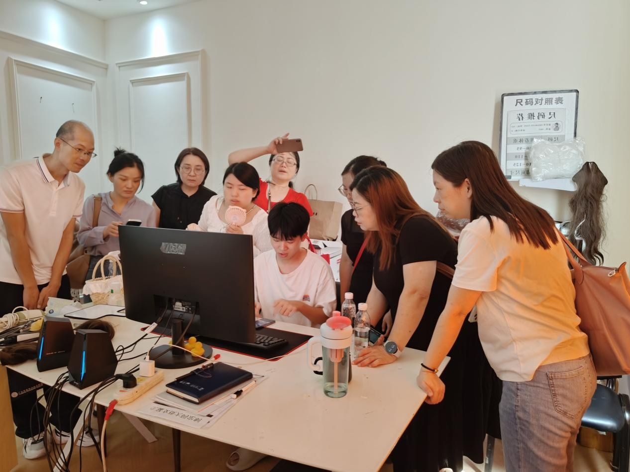 当天上午,学员们在广州大洋教育科技股份有限公司产教融合事业部经理陈雪珍的陪同下,前往肖夫人服饰有限公司进行参观交流。学员们先后参观了公司仓库和直播间,亲身体验了直播的各个岗位,感受直播舱助理教育数字化转型的力量。企业负责人杨富兵介绍了公司的情况,并与学员们就“直播人才岗位需求”的主题展开交流探讨。