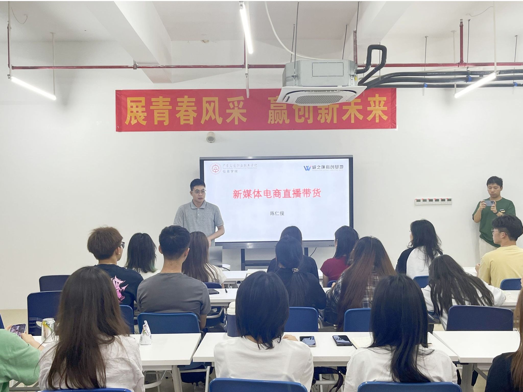 5月10日晚上,信息学院在清远校区众创空间6楼威之廉科创基地培训室开展“百千万工程”突击队新媒体电商直播带货培训。信息学院数媒专业教师关少珊,威之廉科创基地代表、企业导师陈仁俊,信息学院团委书记王杰,辅导员代表,信息学院、运输与经济管理学院、智慧交通工程学院等二级学院共16支“百千万”突击队师生逾50名师生参加培训。 -