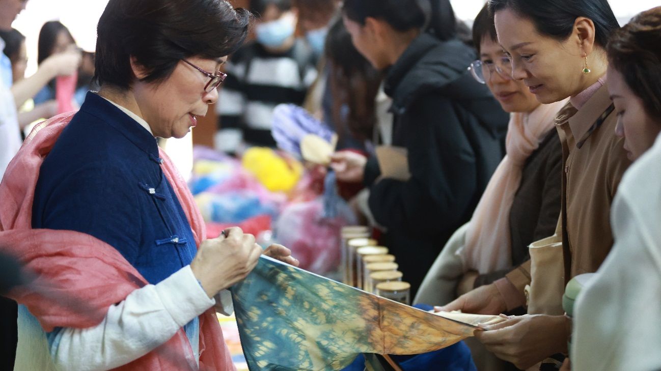 为弘扬劳模精神、劳动精神和工匠精神,传承中华传统植物染色技艺,3月14日下午,学院工会邀请“尹春洁劳模创新工作室”到国际校区开展以“传承中华植物染色技艺,品味美好生活”为主题的劳模工匠进校园活动。 -